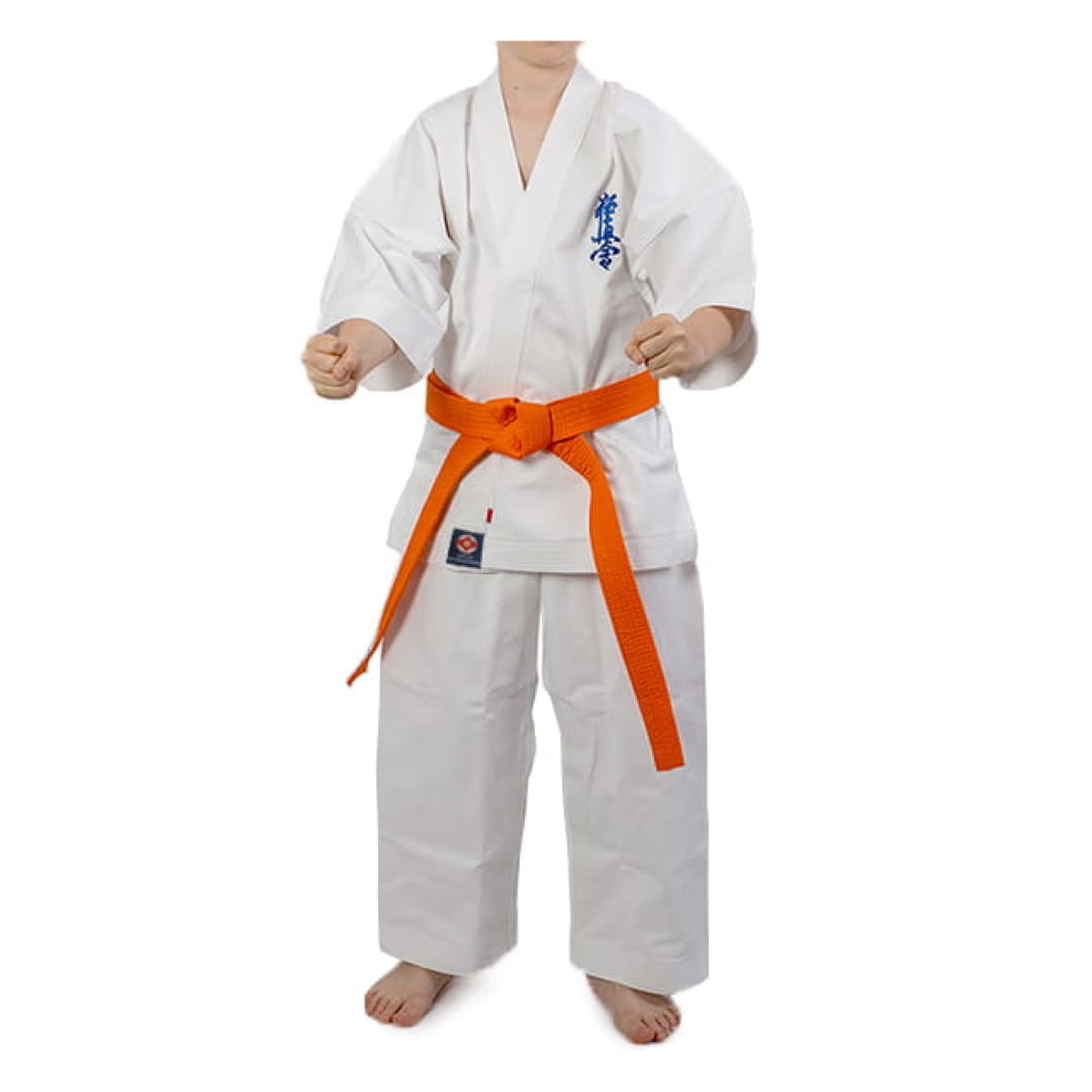 Kimono przeznaczone jest dla dzieci o wzroście od 120 cm do 150 cm. Kimono ma krój charakterystyczny dla Karate Kyokushin: bluza posiada rękawy ¾, natomiast spodnie są długie za kostki, a w kroku znajdują się kliny.