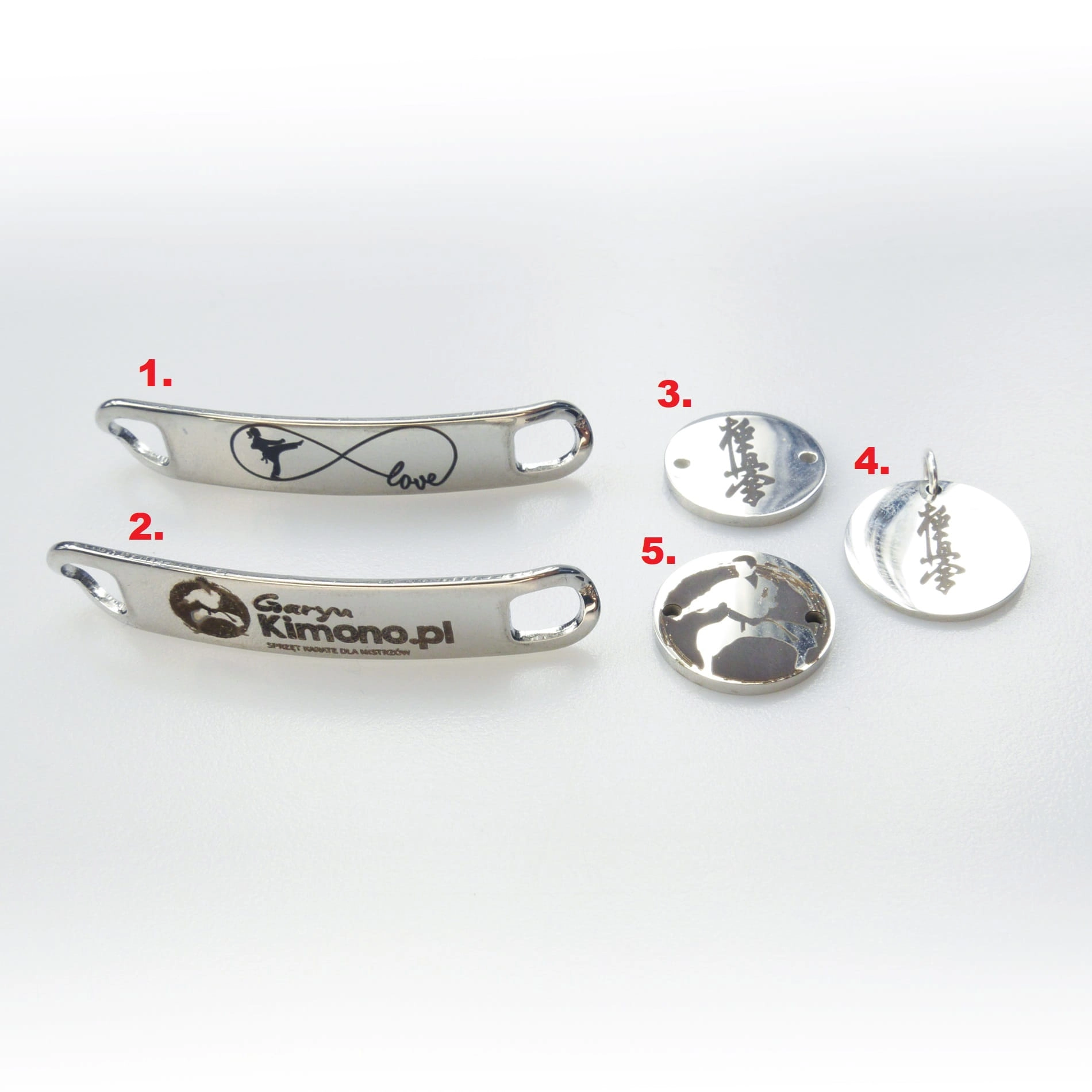 Bransoletka dostępna jest w pięciu wariantach z różnymi zawieszkami. Prosimy o wybór zawieszki podczas składania zamówienia. Na zdjęciu przedstawiono wszystkie modele zawieszek.