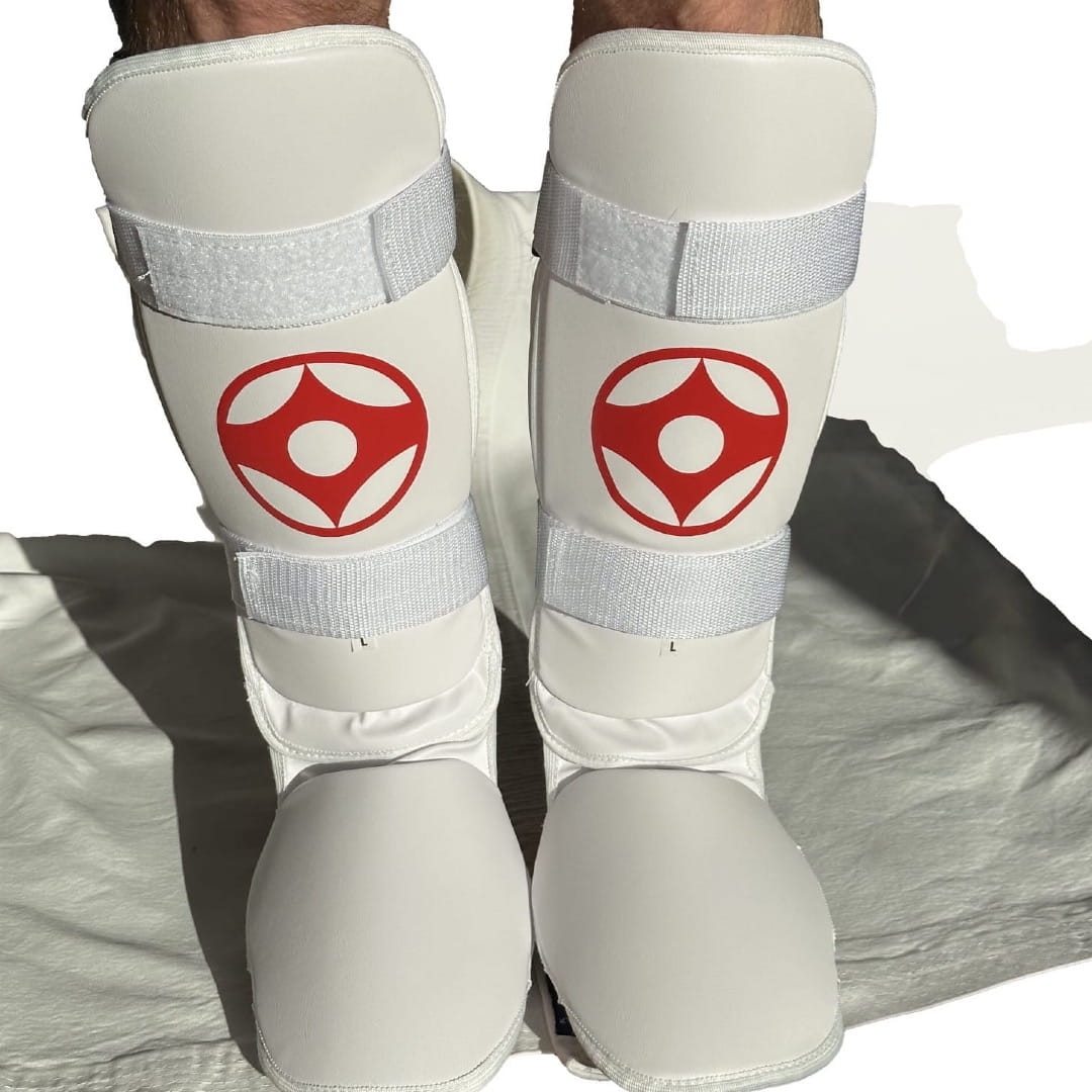 Ochraniacz goleń-stopa do karate skóra ekologiczna z Symbolem Karate Kyokushin "Kanku"